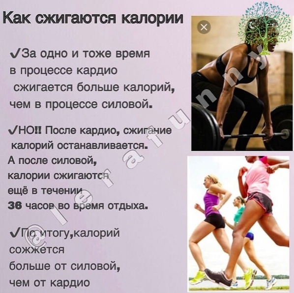 Аэробные нагрузки сжигают большое количество калорий: чем интенсивнее кардио, тем больше калорий тратится. Выбирайте бег, ходьбу на эллипсе, степпере, сайкл и тренируйтесь, не превышая пульс.