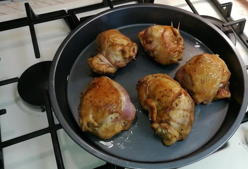 Куриные бедра со сметаной в духовке готовы.
