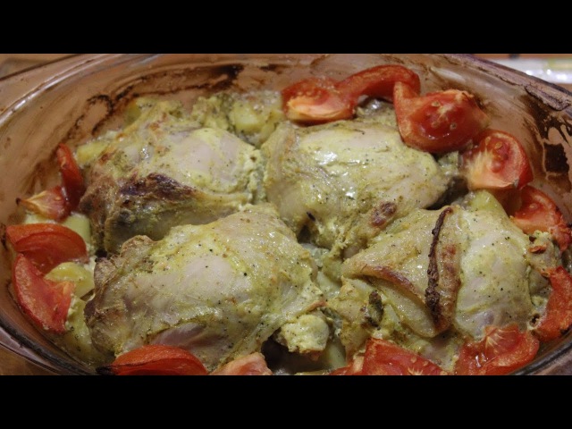 Запеченные куриные бедра в сметанном соусе