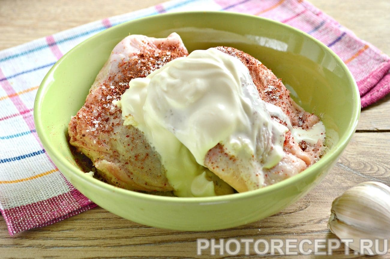 Намажьте курицу сметаной.