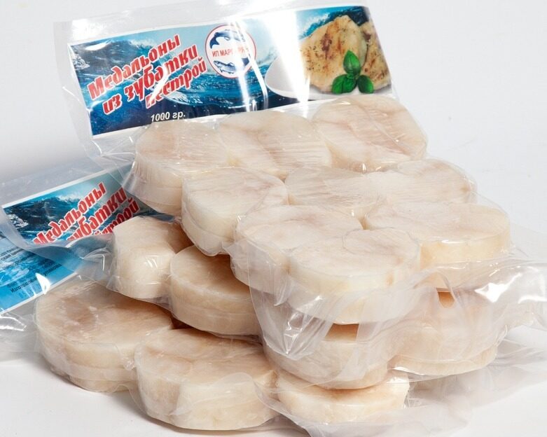 Такая рыба имеет немного непривычный внешний вид, который обусловлен широкими челюстями и большими зубами, еще, один из подвидов имеет синий цвет. Мясо белое, нежное, не содержит мелких косточек, достаточно жирное. На территории Европы этот продукт встречается чаще всего в замороженном виде (стейк или брикет).
