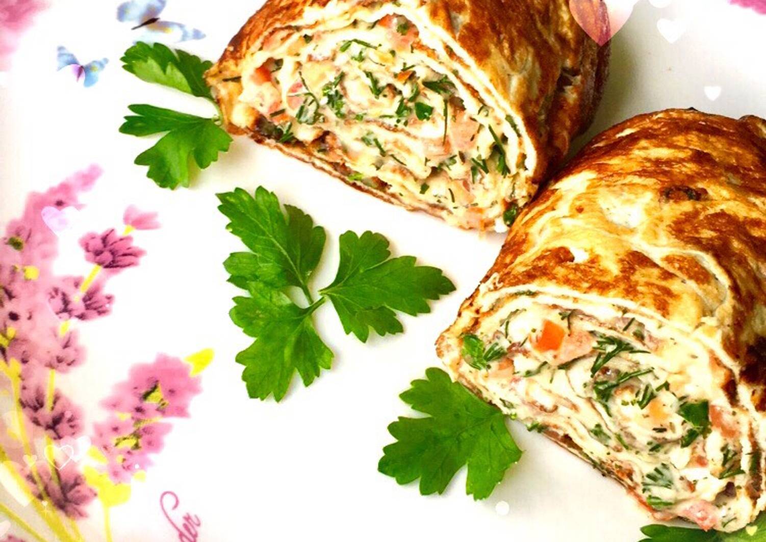 Этот рецепт сырно-яичного рулета я увидела в вырезке из старого кулинарного журнала. Он так аппетитно выглядел, что не смогла удержаться и не приготовить! Во время процесса приготовления у меня возникло пару вопросов, но результат очень порадовал. Такая закуска получается очень нежной и аппетитной! Количество ингредиентов оставляю без изменений, но рулет по размеру очень внушительный)))