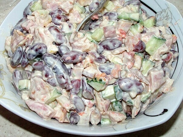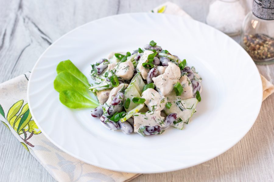 Салат с куриной грудкой и фасолью консервированной: Салат с фасолью и курицей пошаговый рецепт