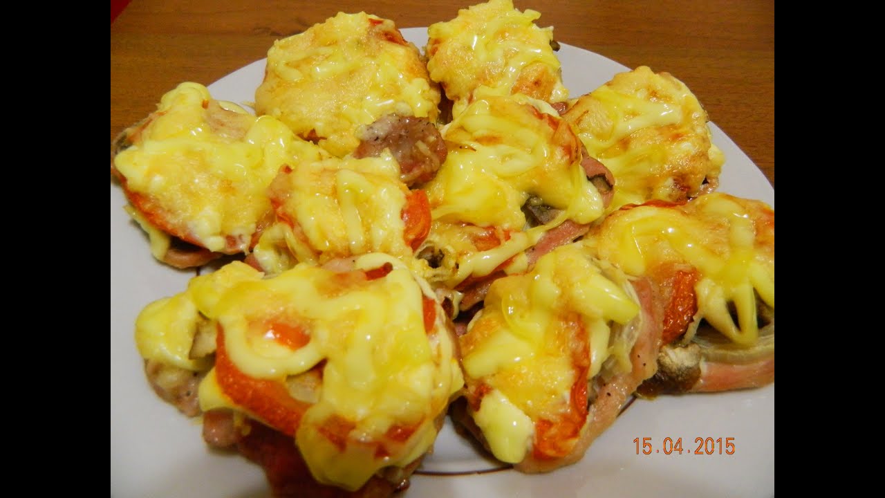 Для приготовления этого блюда нам потребуется: куриное филе, шампиньоны, лук, чеснок, майонез, мука, яйцо, помидоры, сыр, соль и черный молотый перец.