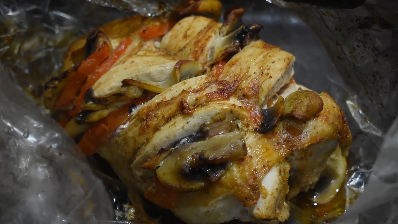 Как запечь куриную грудку с грибами и помидорами под сырной корочкой