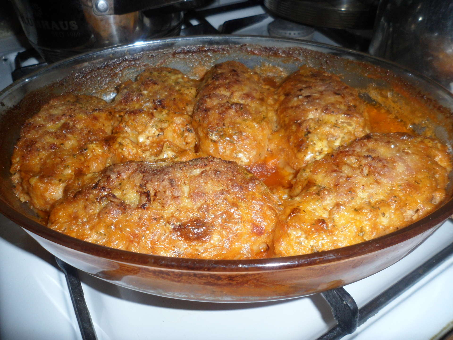 Все смешиваем и формируем котлеты. Выкладываем в емкость и заливаем соусом: