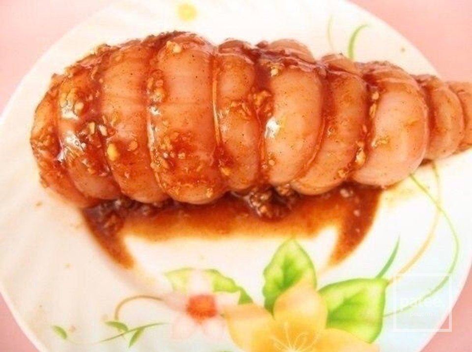 Аппетитная и притом диетическая куриная колбаска в пряностях.