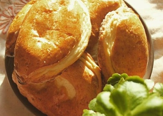 12. Кладут творожную начинку так, чтобы она находилась на одной половине овальной лепешки.