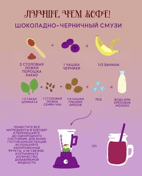 Для тех, кто не любит придумывать сложные и правильные завтраки, идеально подойдет этот вкусный и полезный напиток. Всего 1 минута — и полезный завтрак будет готов. Так как завтрак — это один из самых главных приемов пищи, то он обязательно должен быть сбалансированным, сытным и полезным, ведь его цель — разбудить метаболизм и дать вам энергию до следующего приема пищи. В пп смузи на завтрак можно смело класть: